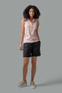 Women's plain-coloured, sleeveless soft viscose polo shirt. Classic collar and V neck with small button fastening. Regular model with a comfortable fit that adapts perfectly to the female figure. Ideal with a skirt or a pair of classic trousers. For a special evening or an aperitif with friends. Contrasting La Martina logo embroidered on the front. The model is 174 cm tall and wearing a size S.