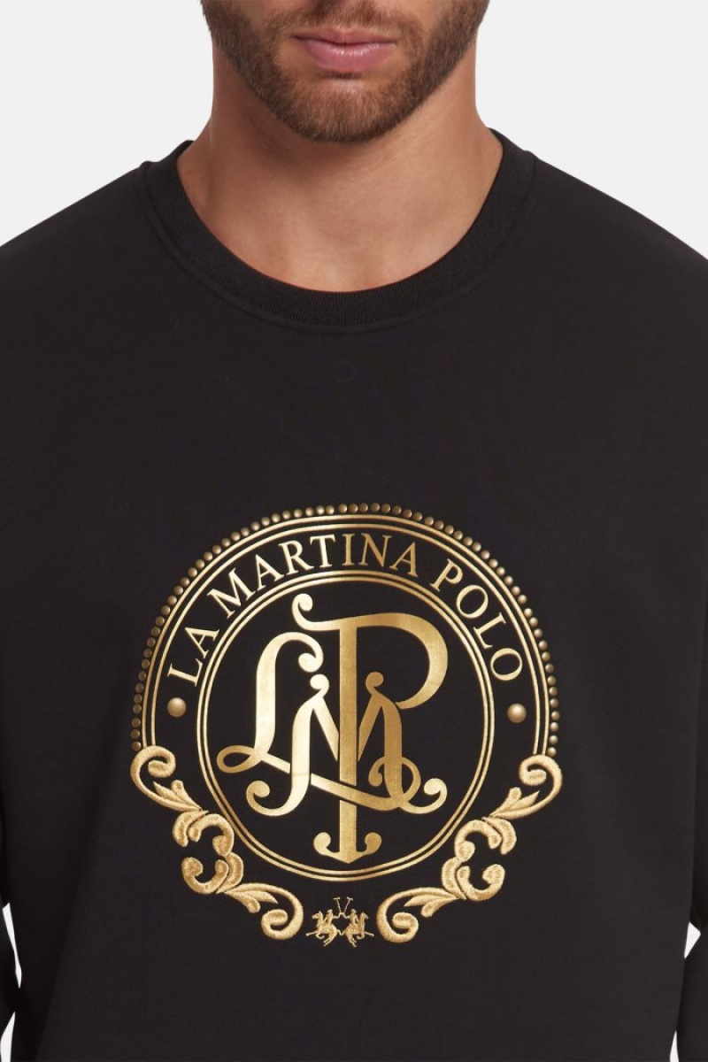 :: Sudadera La Martina Regular-fit Brushed Cotton Hombre Negras Chile | BSM-6295